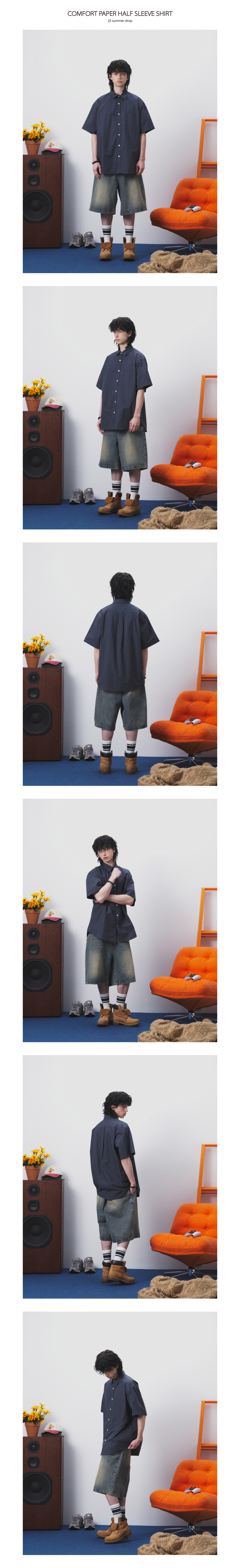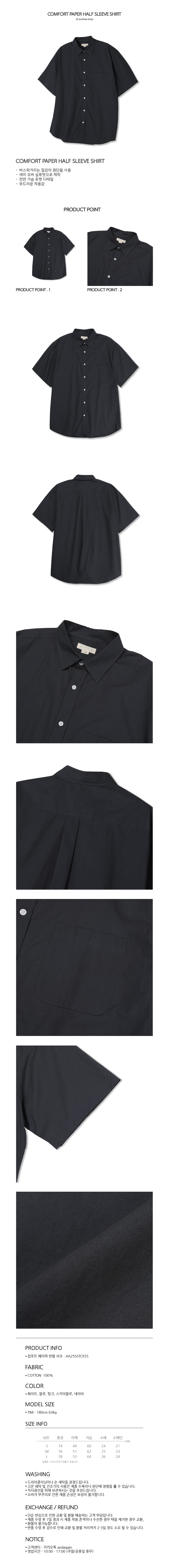 컴포트 페이퍼 반팔 셔츠 (네이비