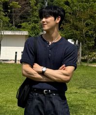 썸머 리브드 헨리넥 숏 슬리브