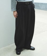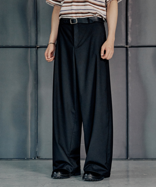 하프밴딩 와이드 세미커브드 슬랙스 - 블랙