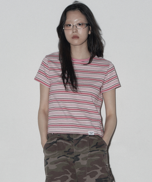 W/빈티지 스트라이프 숏 슬리브 티셔츠(2color)