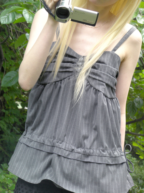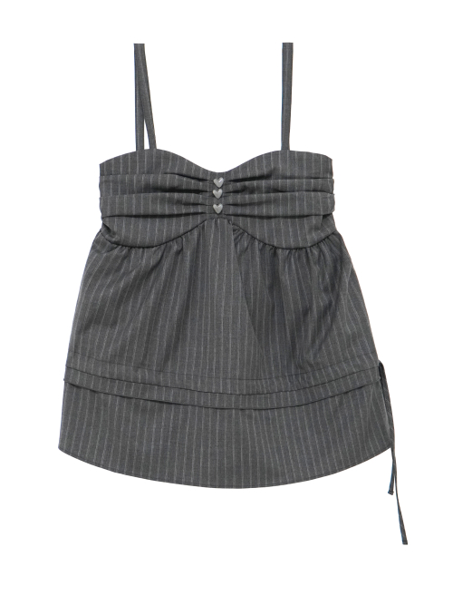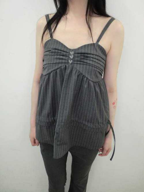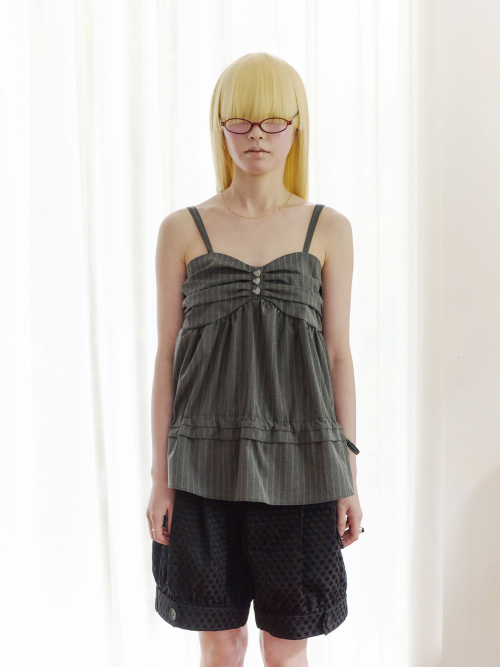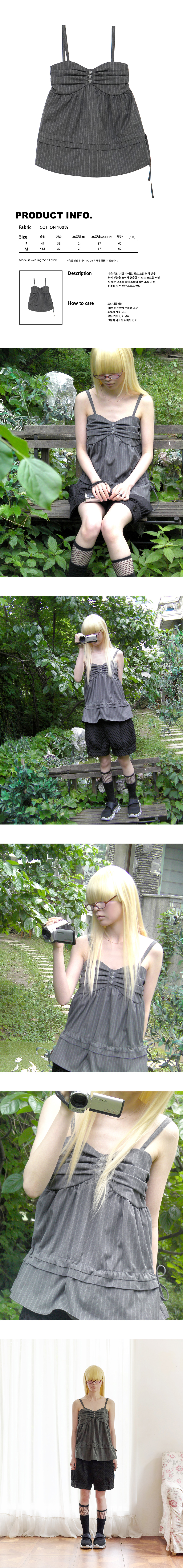 버튼 스트라이프 레이스 탱크 탑 (라이트그레이)