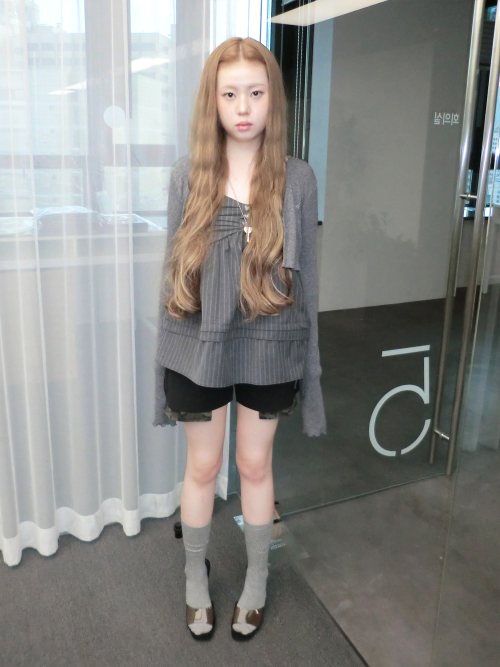셔링 플레어 스트라이프 탑 (그레이)