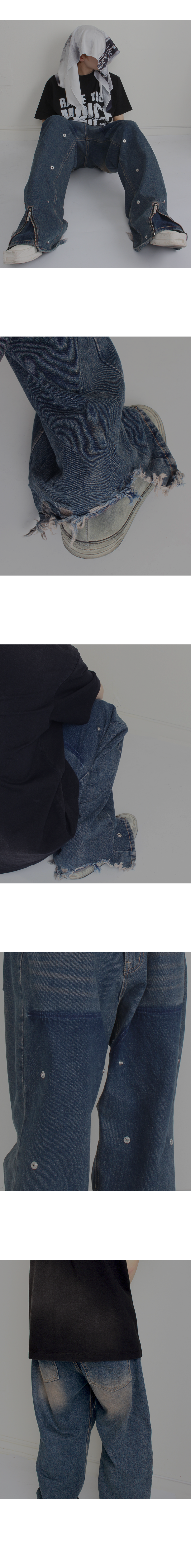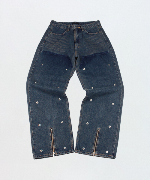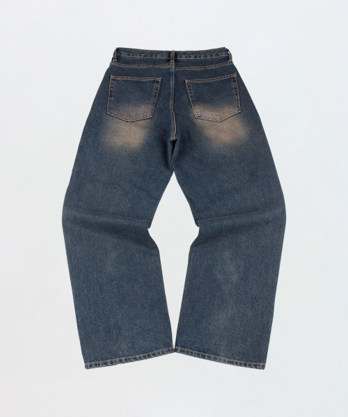 DISTRESSED DOUBLE KNEE DENIM PANTS_BLUE