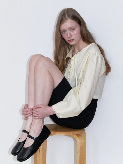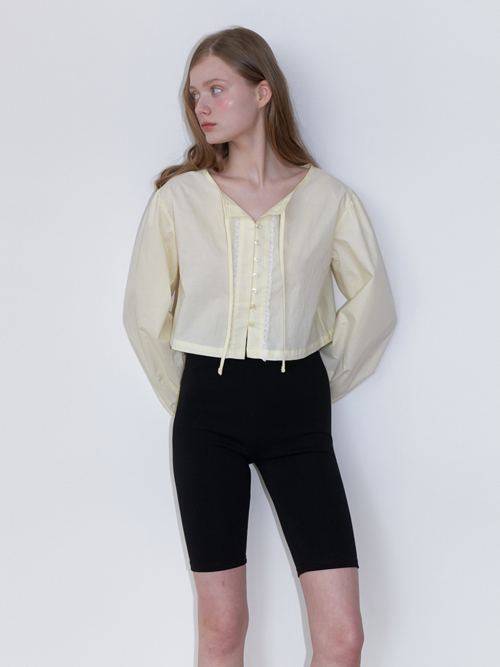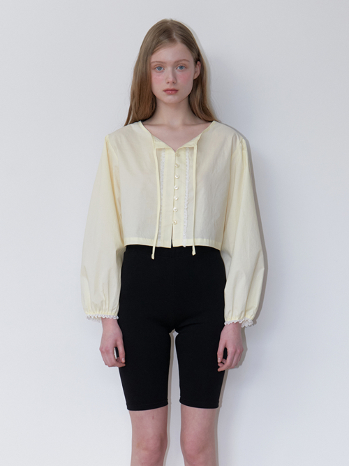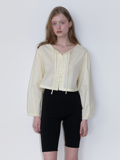 basic lace string blouse - lemon yellow