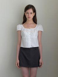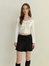 satin puff shirring blouse - cream