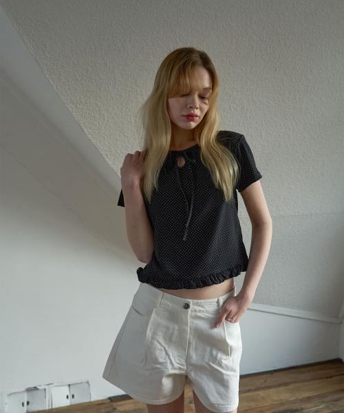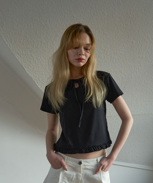 도트 프릴 티셔츠 블랙