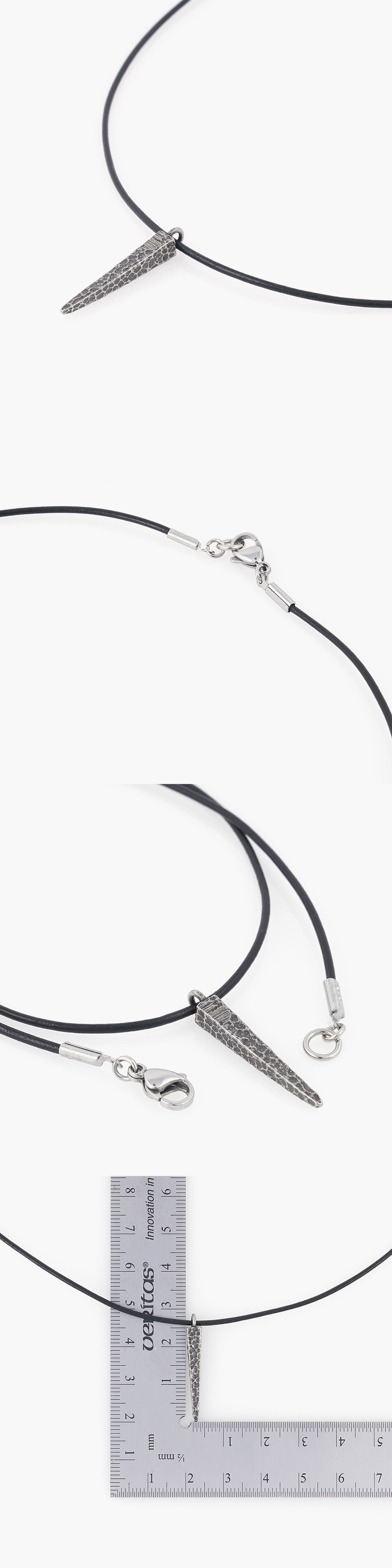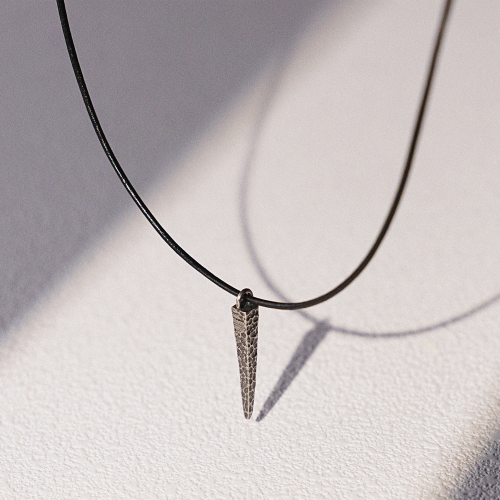 가죽 스트링에 유니크한 디자인의 니들형 팬던트를 이용해 제작된 목걸이입니다.