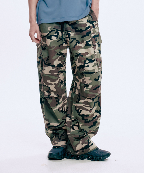 벌룬핏 비조 스냅 와이드 카모팬츠