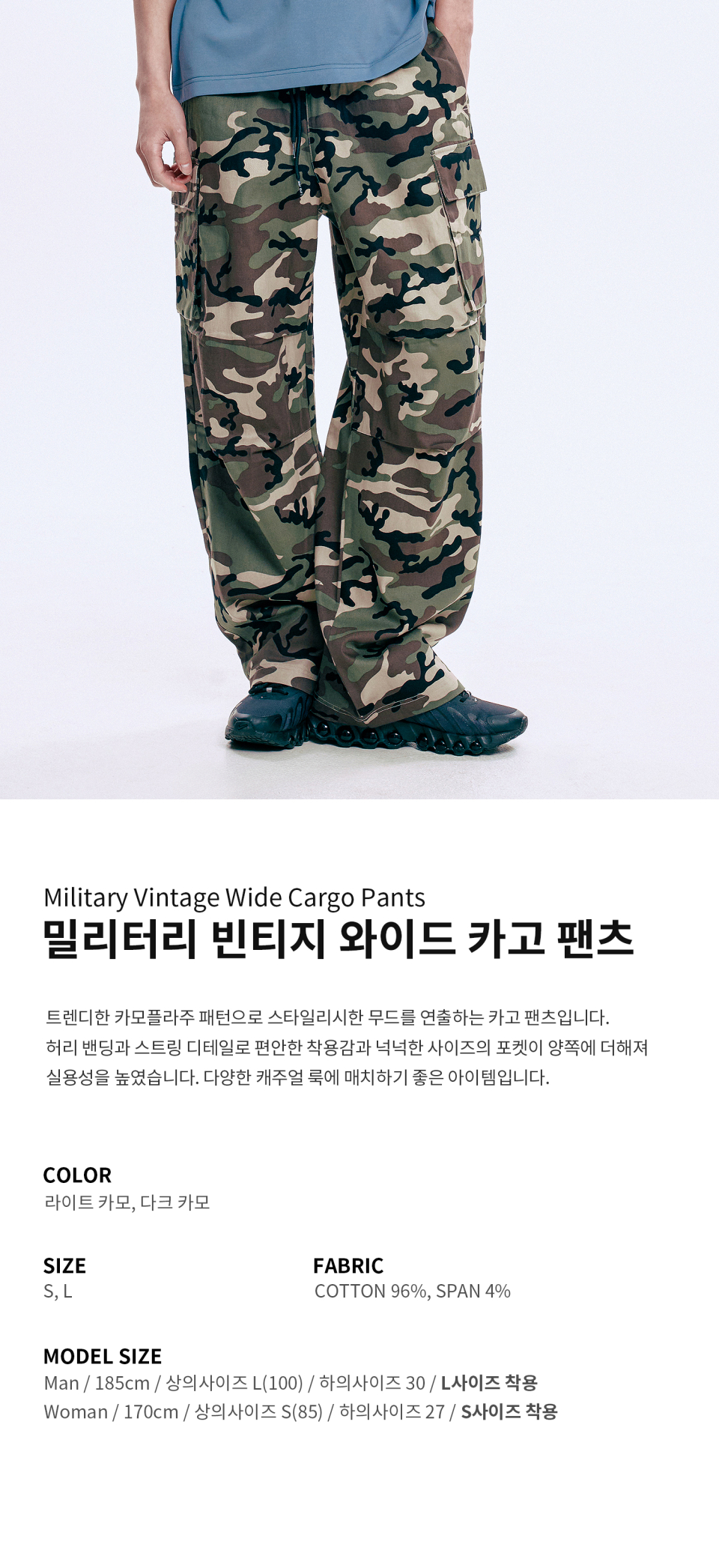 밀리터리 빈티지 와이드 카고 팬츠_라이트 카모