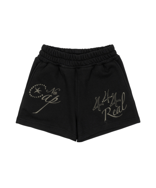 엔젤 아플리케 커브드 스웨트 팬츠[블랙]