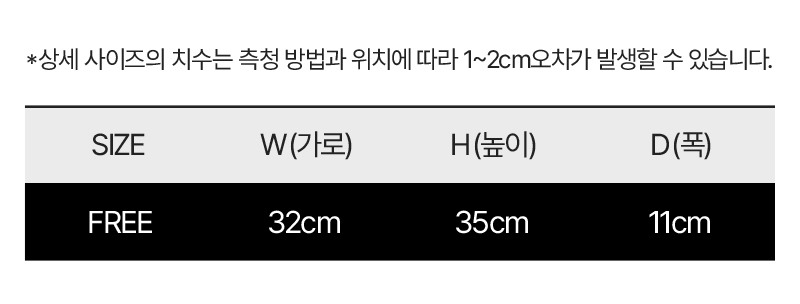 | 크기 | 실측(FR)사이즈(cm)-가로32 세로35 폭11 중량543g |