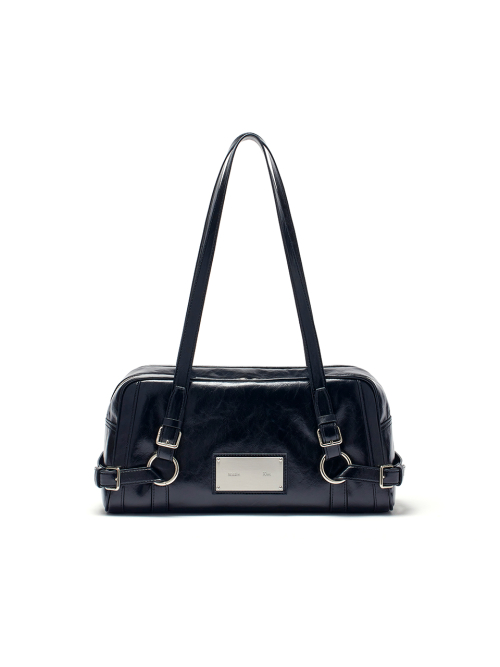 양 옆 스트랩과 금속부 로고 장식이 포인트인 숄더백