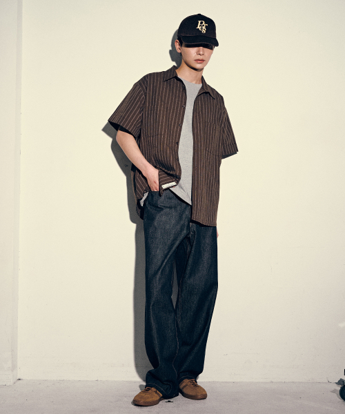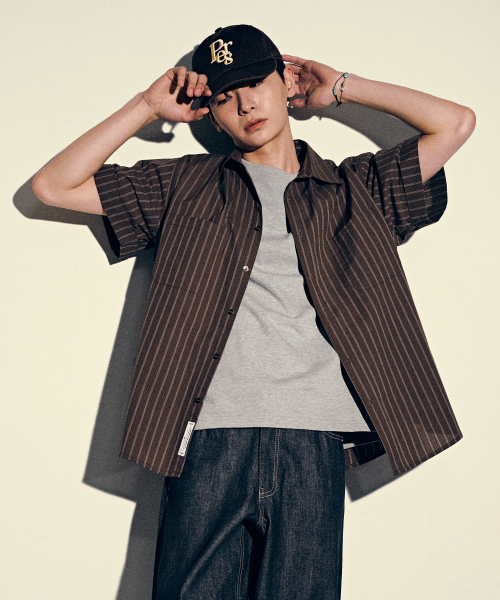 카브라 스트라이프 반팔 셔츠-브라운