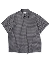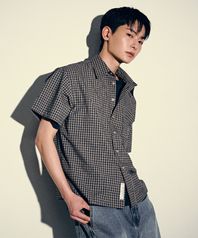 UNISEX 크롭 체크 반팔 셔츠-블랙