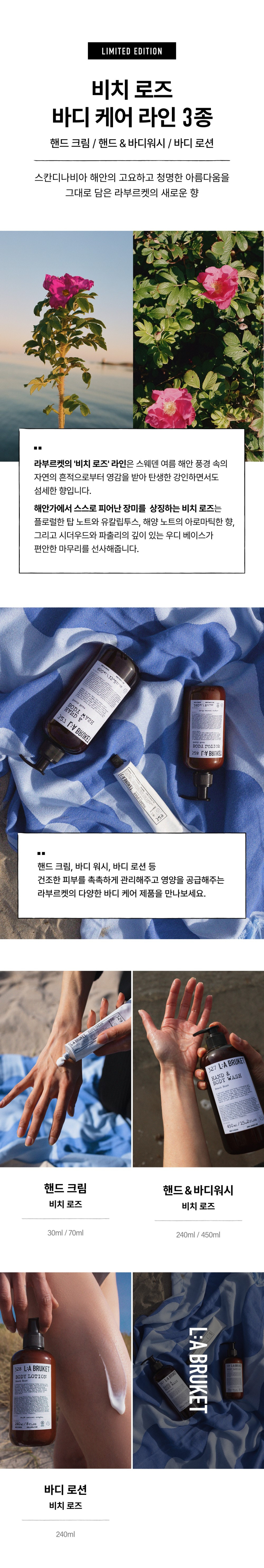 라부르켓(LA BRUKET)은 스웨덴 청정 해안 자연의 향과 원료를 그대로 담은 라이프 스타일 브랜드입니다. 딱풀 립밤으로 유명한 립케어 제품부터 바디케어, 홈 프래그런스까지, 북유럽 청정 자연을 느껴보세요.