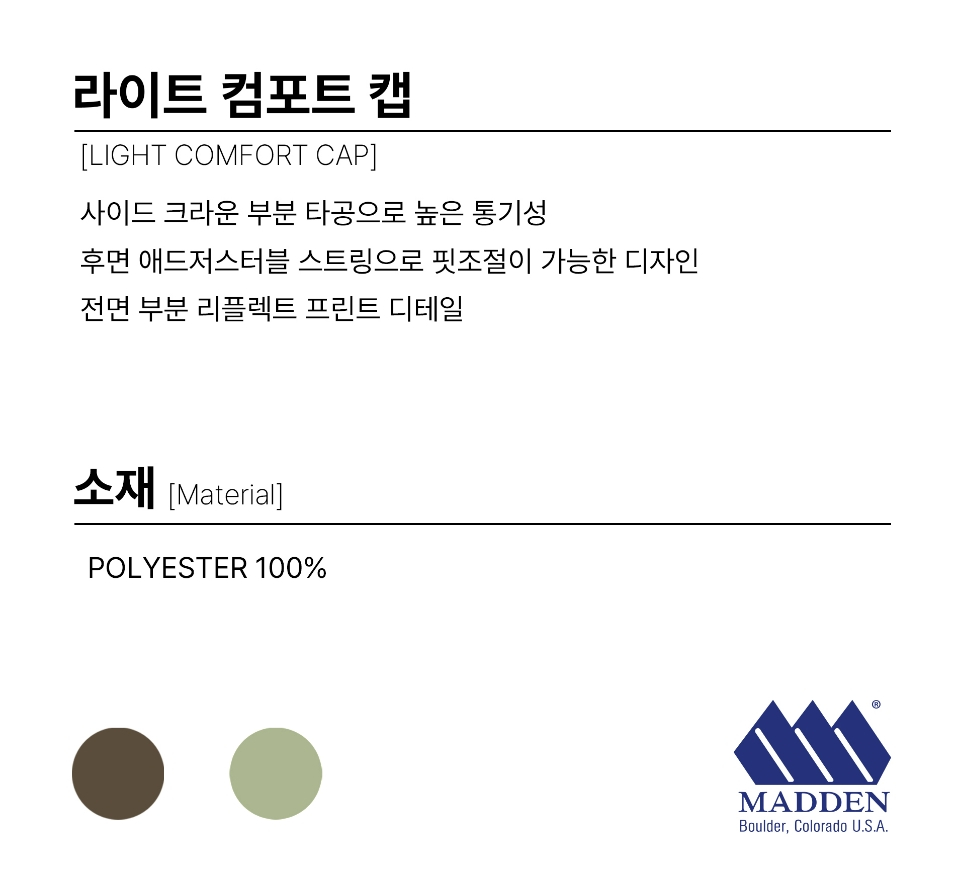 매든(MADDEN)은 1974년 COLORADO주의 BOULDER에서 DAN MADDEN(댄 매든)에 의해 창립되었으며, 많은 시간동안 다양한 스타일의 제품으로 아웃도어 매니아들과 소통해왔습니다. 2023년 더욱 발전된 모습으로 캠핑, 하이킹, 싸이클링 등 다양한 아웃도어 활동에서 영감을 받아 언제 어디서나 편안하게 착용할 수 있는 라이프스타일 웨어 브랜드로 재 탄생하였습니다. 브랜드의 헤리티지, 트렌드와 실용적이고 기능적인 디테일을 연구해 적용한 디자인으로 매 시즌마다 새로워진 매든(MADDEN)으로 누구나 착용할 수 있는 패션을 선보입니다. "Simple, Daily, Steady Seller Style, Durable More Than Any Brand”