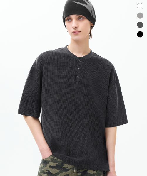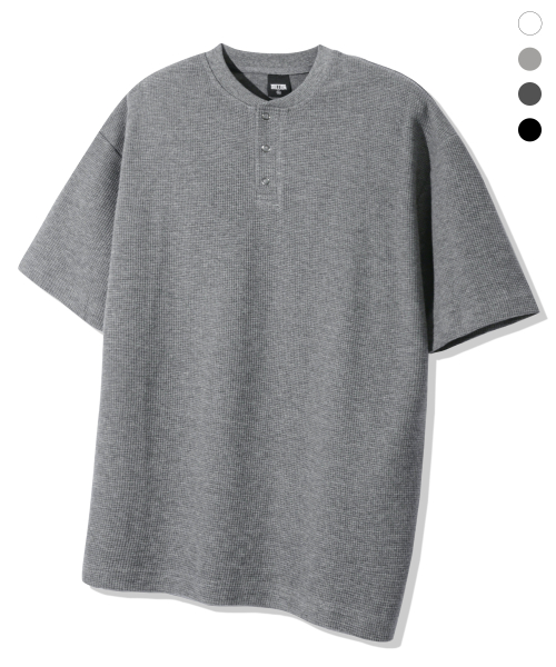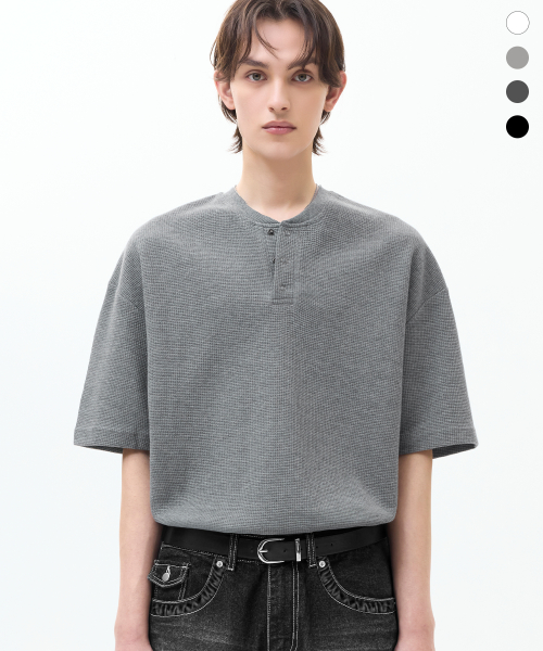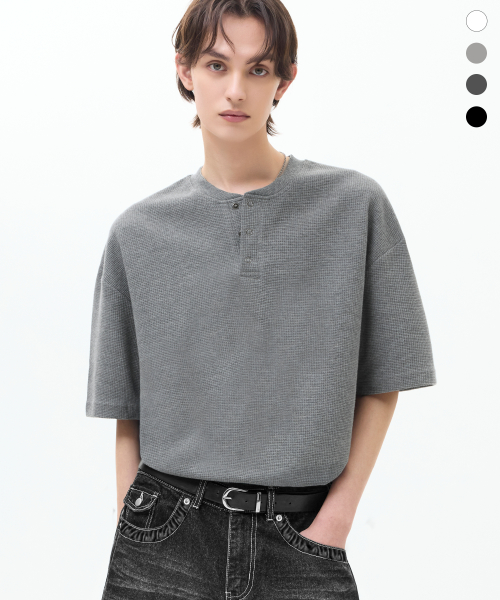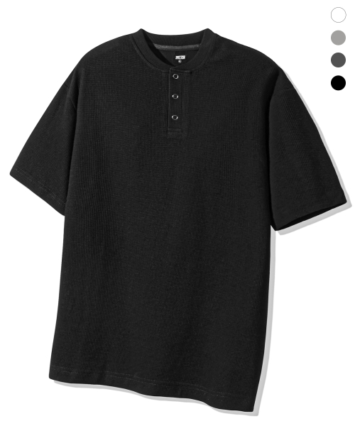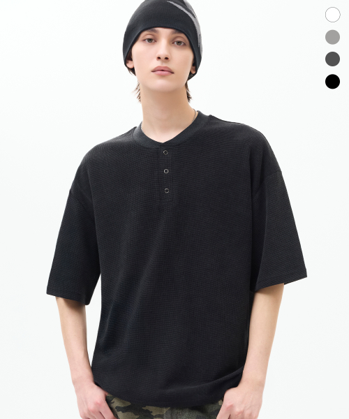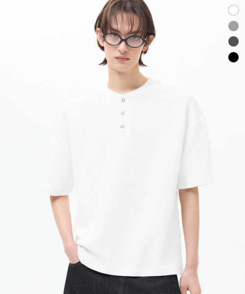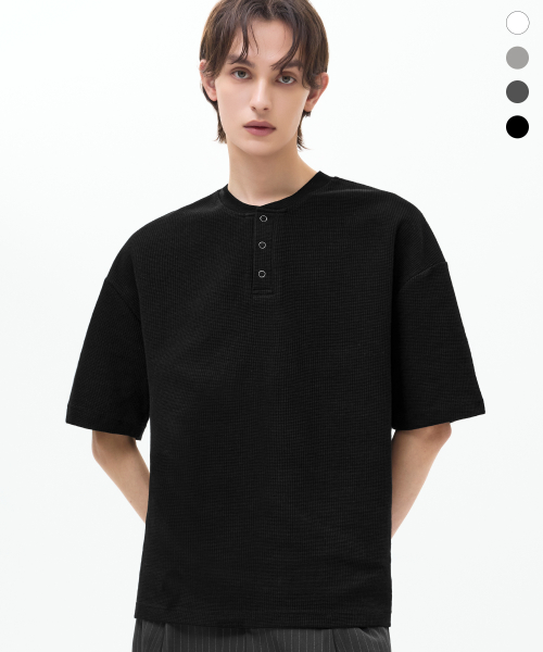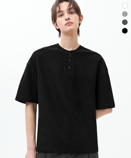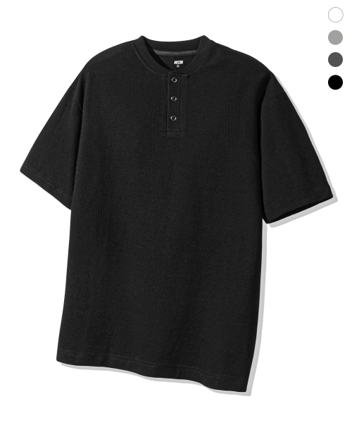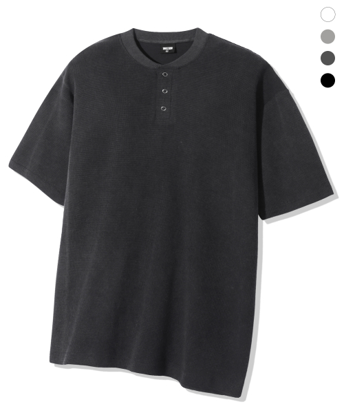 와플 링 스냅 헨리넥 하프 슬리브_4color