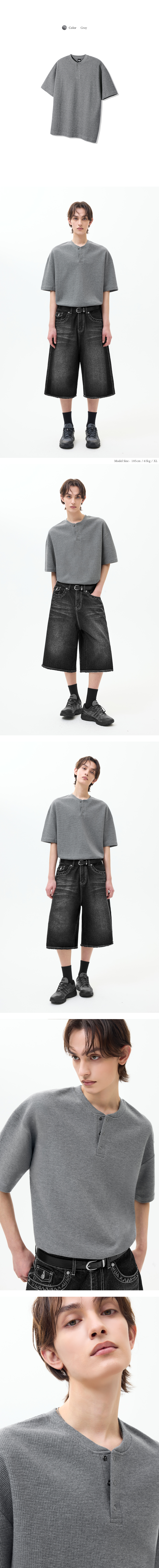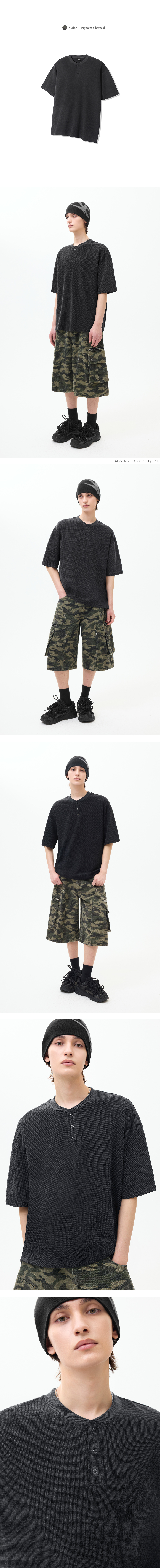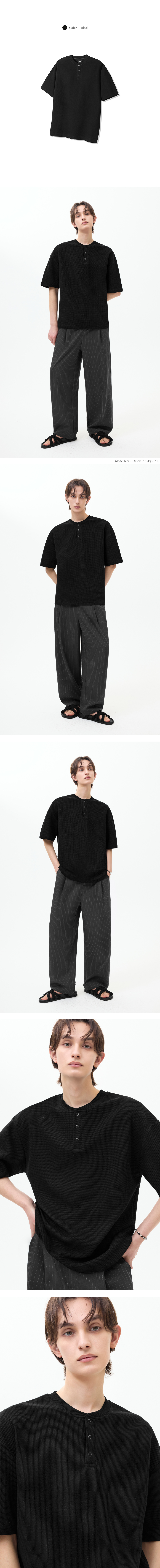 와플 링 스냅 헨리넥 하프 슬리브_4color