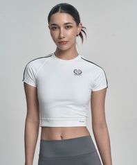 우먼스 더블 스포티 크롭 숏 슬리브 - Black