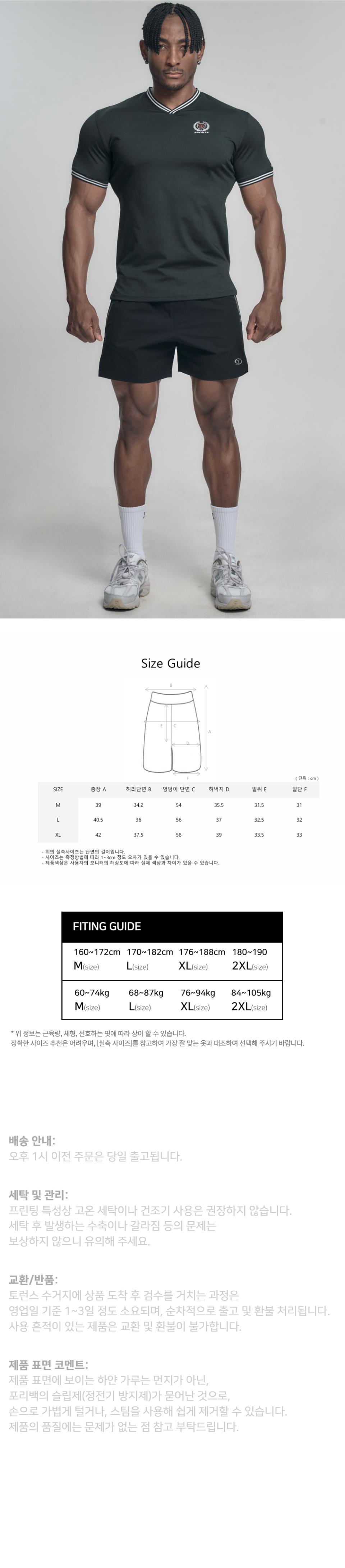 무지 머슬핏 반팔 5컬러