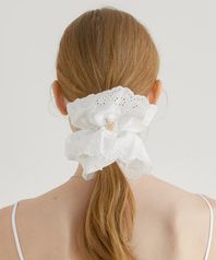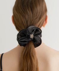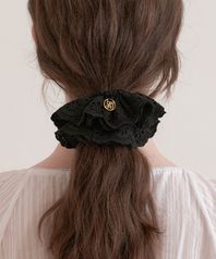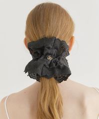 3 layer lace frill logo pendant scrunchie (H021_black)