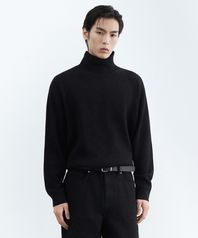 [스토커즈 컬래버] [빅토리아 울] 미니멀 리브드 터틀 넥 니트 [블랙]