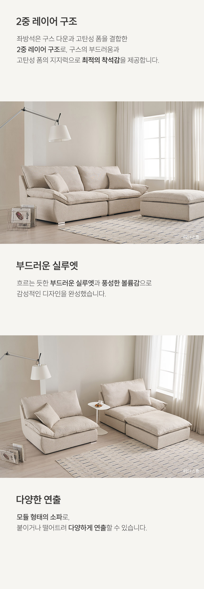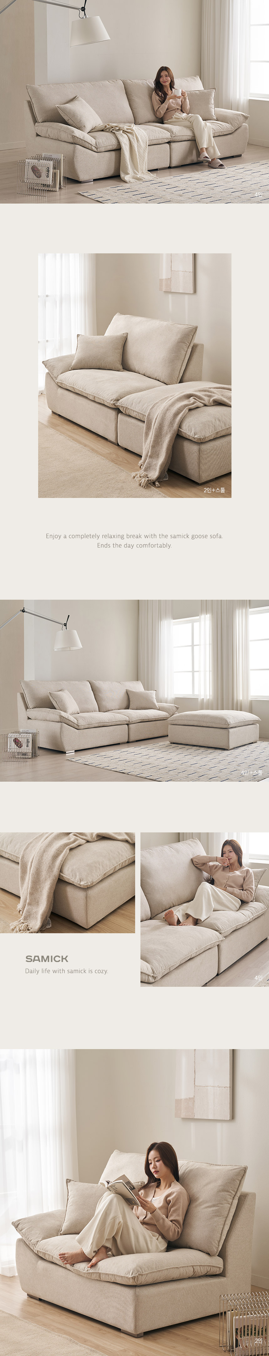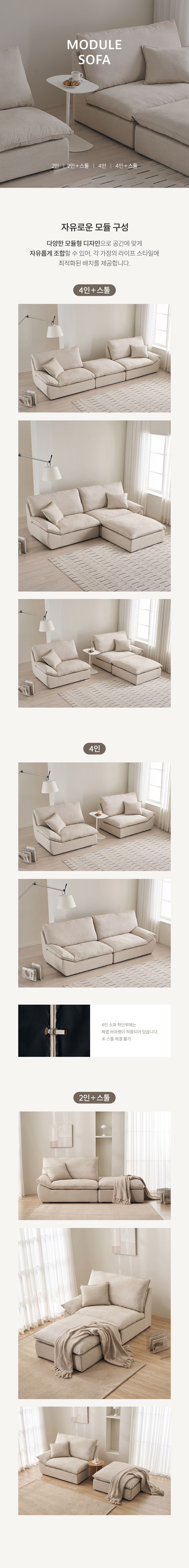 두모브 구스 패브릭 4인용 소파(스툴제외)