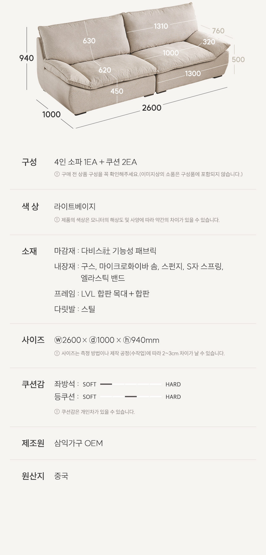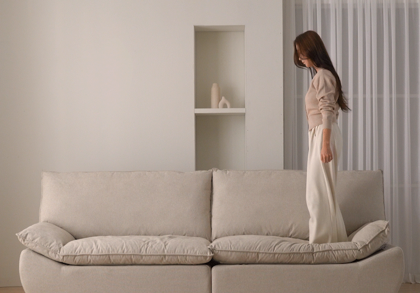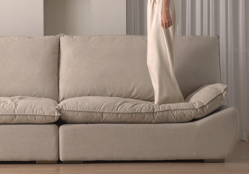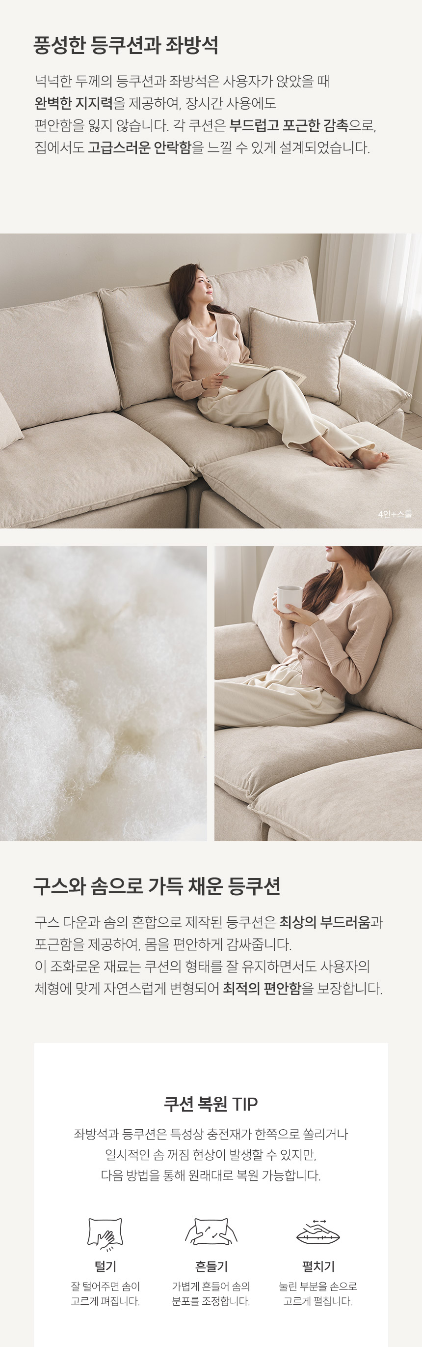 두모브 구스 패브릭 4인용 소파(스툴제외)