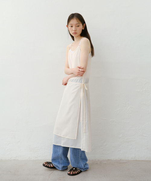 - 비침이 있는 시어한 소재로 제작된 슬리브리스 원피스입니다.