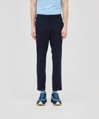 울 블렌드 릴렉스드 테이퍼드 히든 밴딩 크롭 슬랙스 [네이비]