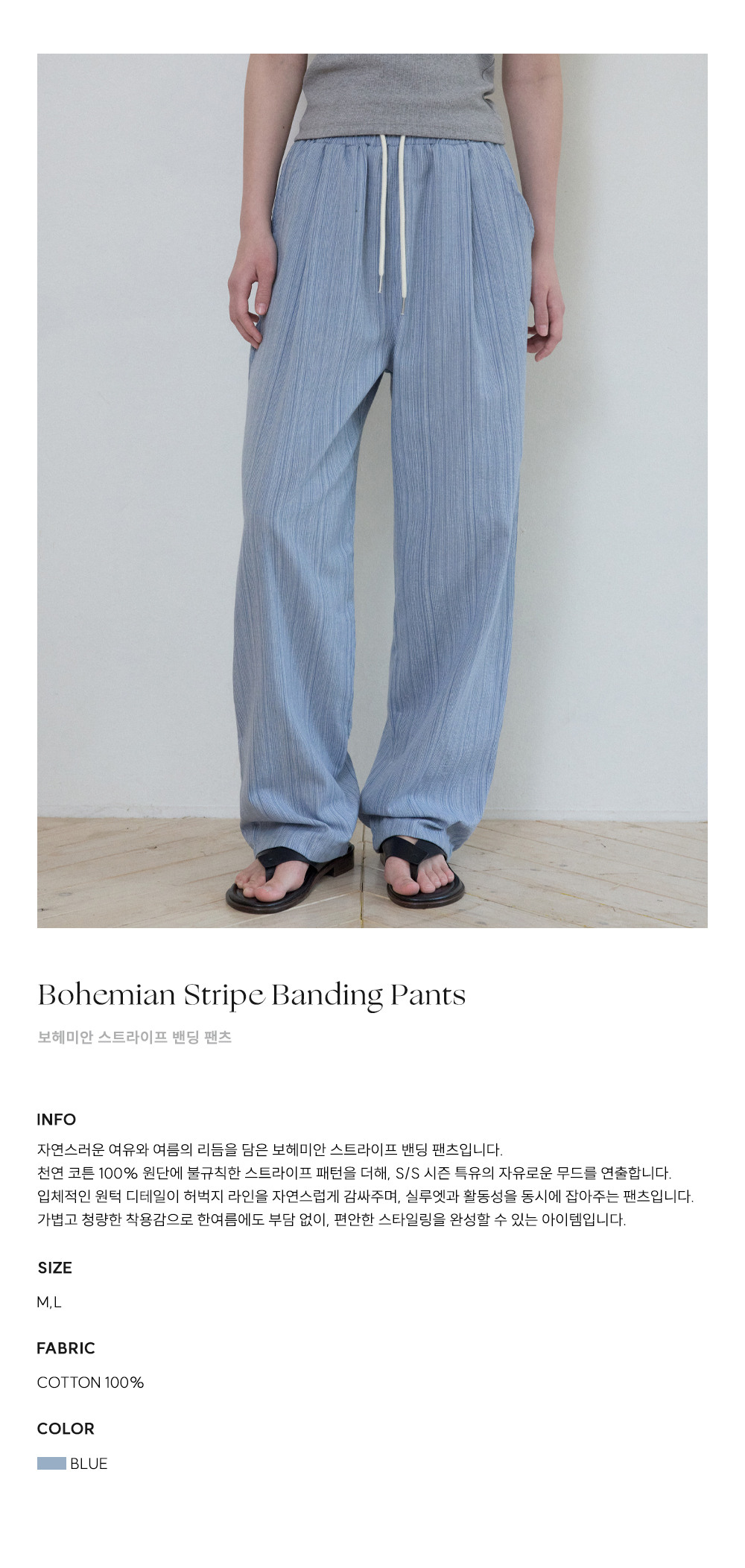 W/보헤미안 스트라이프 밴딩 팬츠_BLUE(W25-PT10)