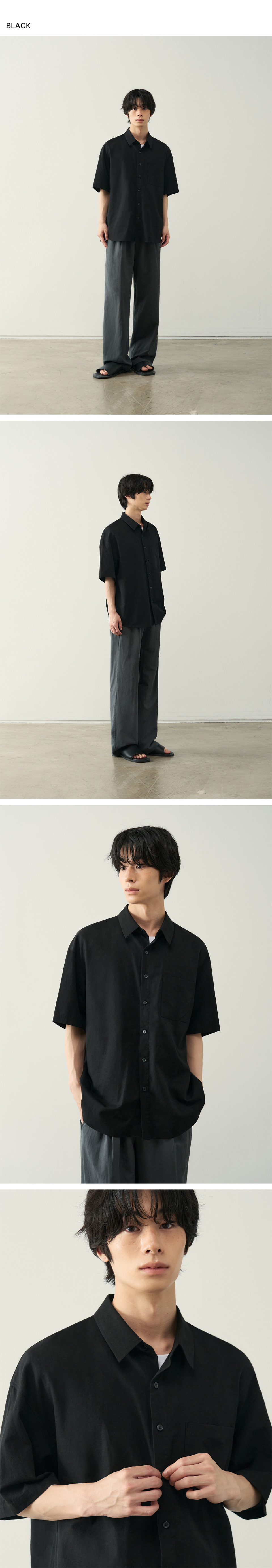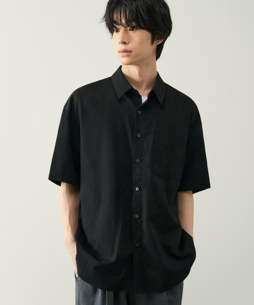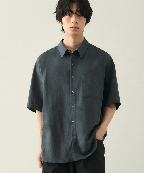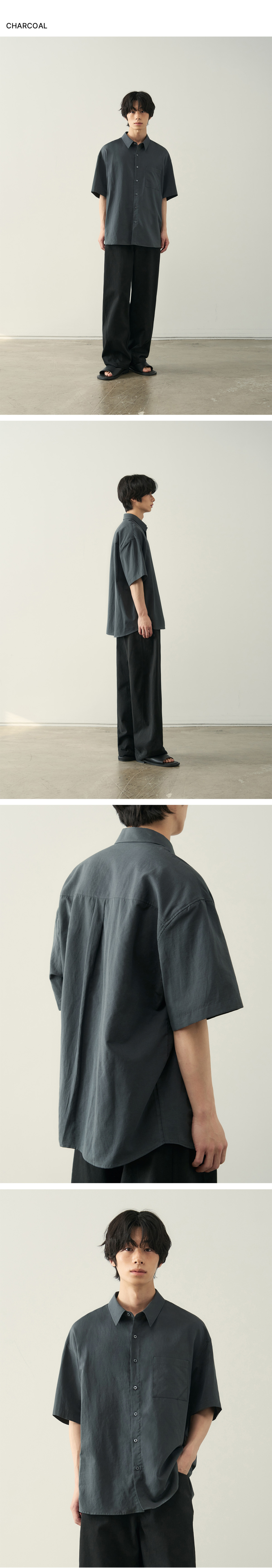 크링클 오버사이즈 우븐 티셔츠 [다크 그레이]