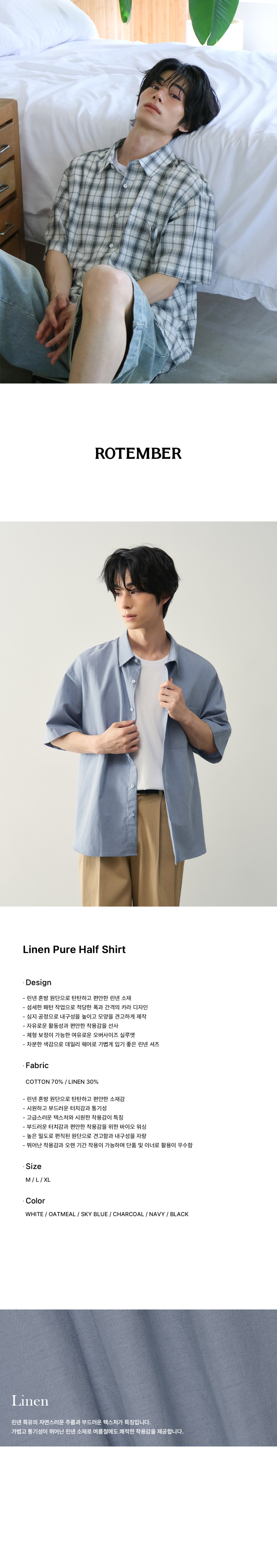 퓨어 린넨 하프 셔츠 [ 6 COLOR ]
