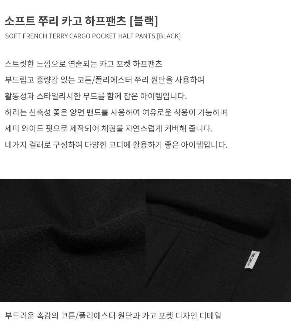 소프트 쭈리 카고 하프팬츠 (블랙)