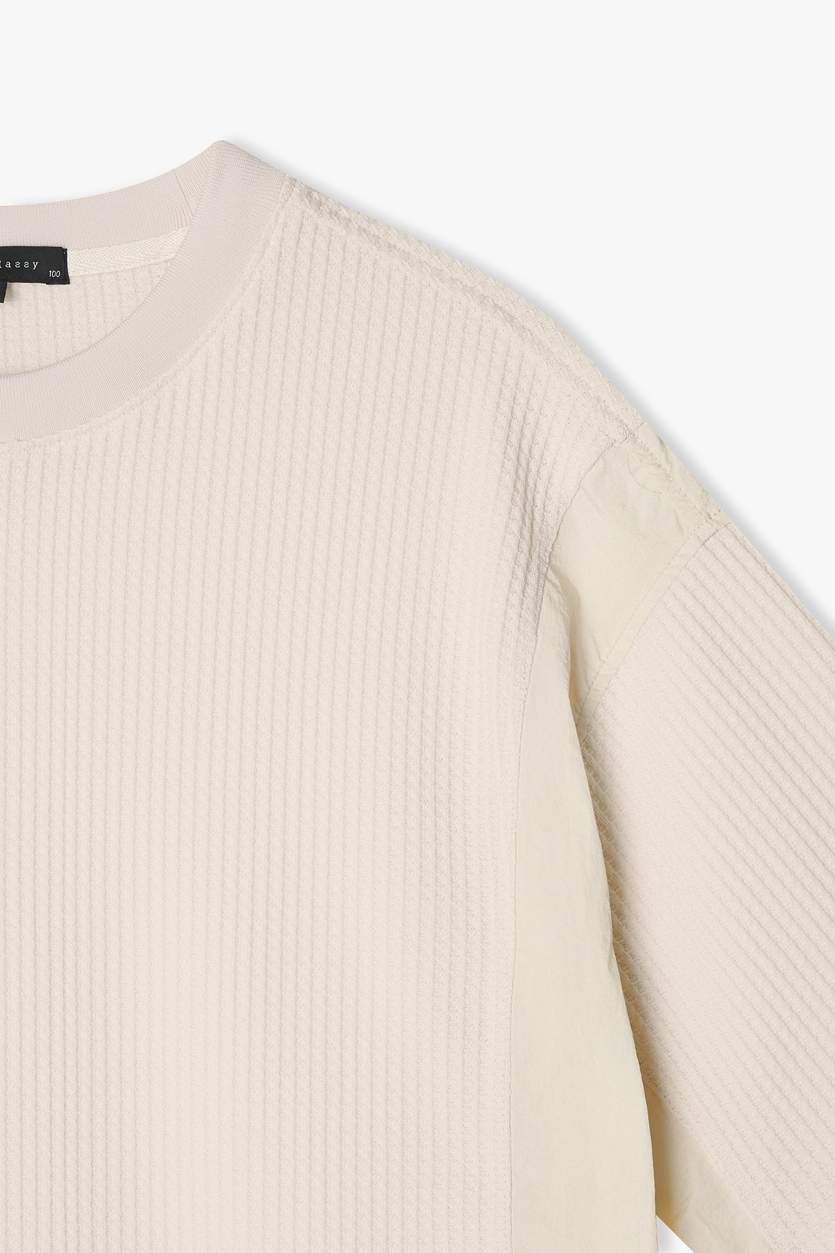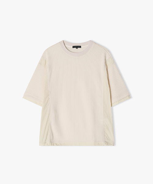 [25SS] LLM41538 크림 와플 텍스쳐 믹스 하프 티셔츠