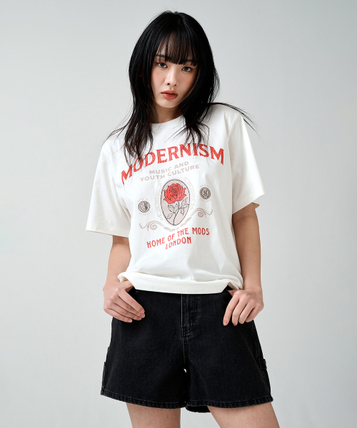 우먼 로즈 그래픽 피그먼트 반팔티셔츠 BPCTS851F