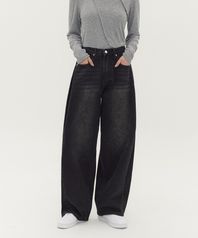 유니섹스 사이드 핀턱 벌룬 와이드 데님 팬츠 (블랙)