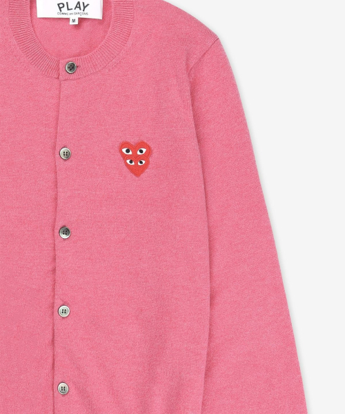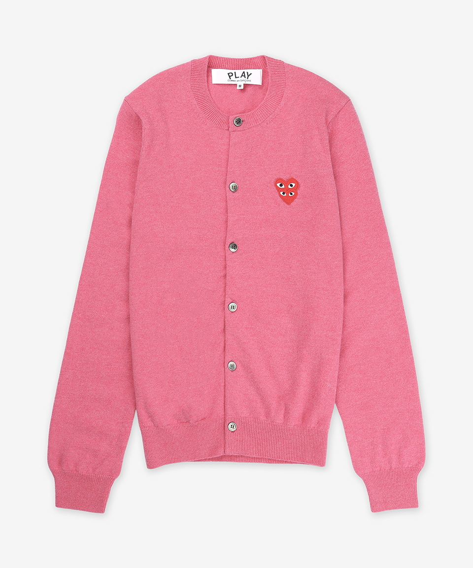 더블 레드 하트 엠블럼 라운드넥 가디건 - 핑크 / AXN0750514