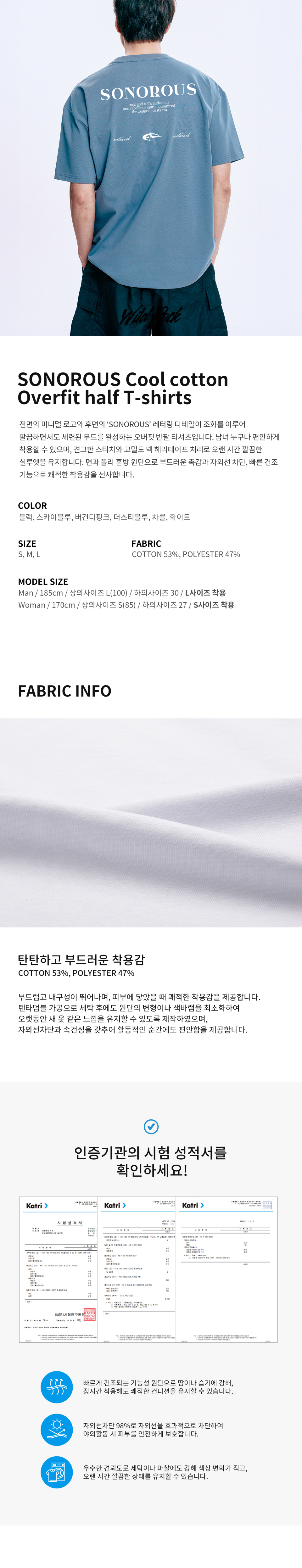 SMALL CENTER 쿨 코튼 오버핏 반팔(SISSTD-0015)