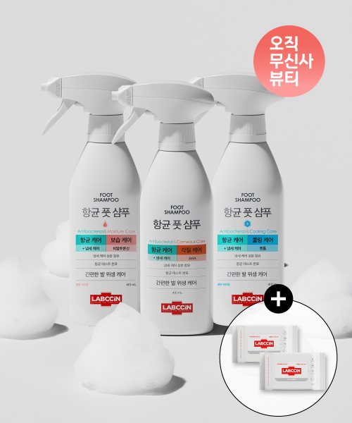 항균 풋샴푸 3종 세트 구성 410ML + 랩신 손소독티슈 2개입 추가 증정