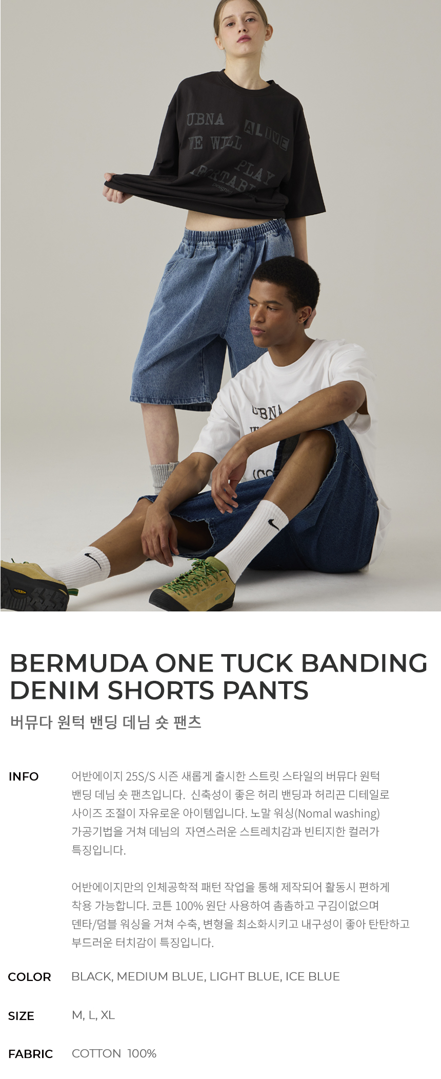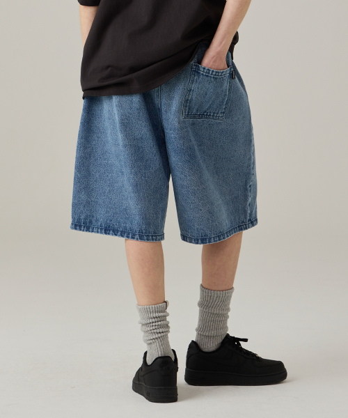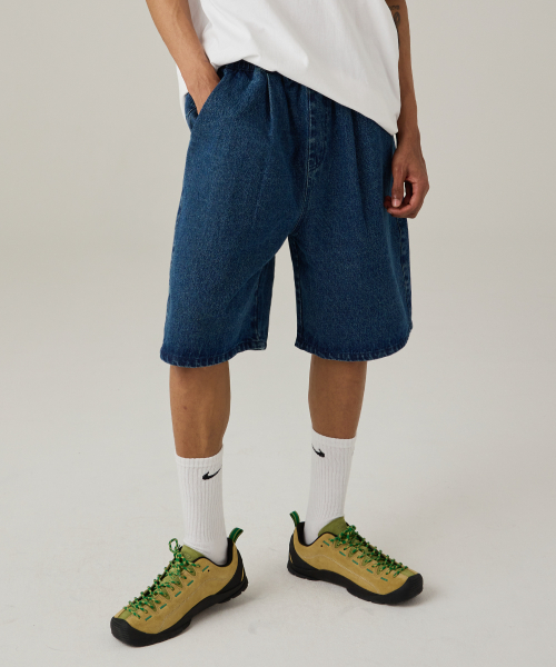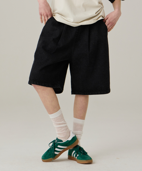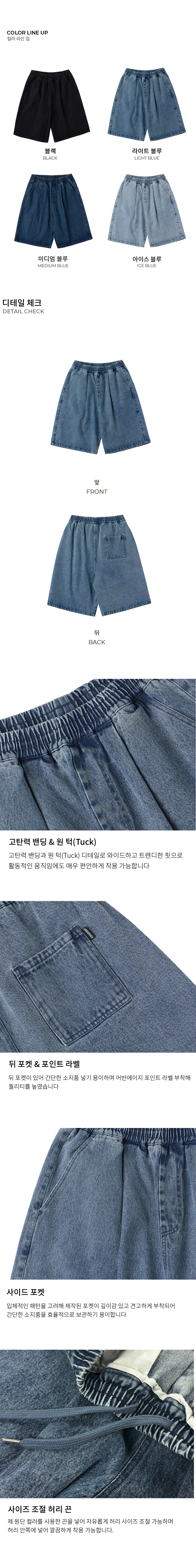 [2PACK] 버뮤다 원턱 밴딩 데님 숏 팬츠 4color