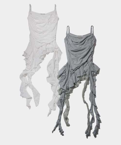 레이스 프릴 레이어드 슬림핏 사이드 셔링 나시 슬리브리스 _ 3COLOR
