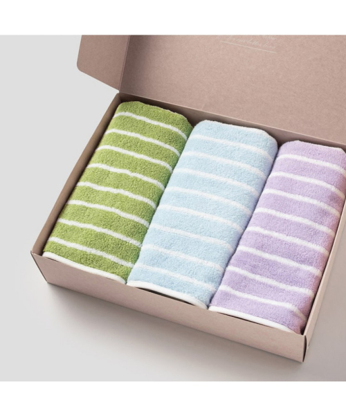 화사한 컬러의 스트라이프 패턴이 매력적인 세면타월 3매 세트입니다. 타월 전문 브랜드 송월타올에서 제작하였습니다. 원사를 빗질해 이물질을 제거한 최고급 원사인 코마사로 제작하여 피부에 닿는 촉감이 부드럽고 흡수력이 좋습니다. 세계적인 섬유 품질 인증 기관인 오코텍스(OekoTex®)에서 가장 높은 등급인 영유아가 사용해도 안전한 1등급 인증을 받았습니다. 전용 케이스에 담겨 배송되어 선물용으로도 활용하기 좋습니다.