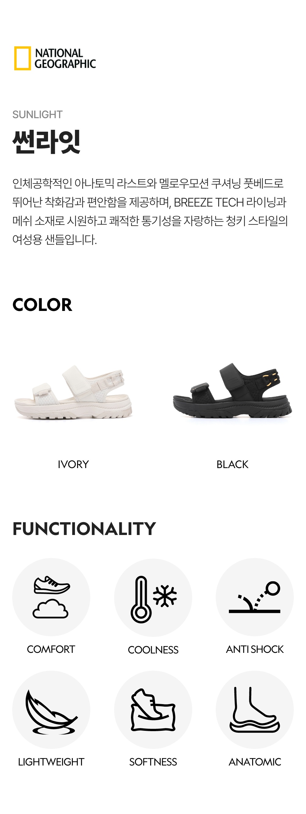 내셔널지오그래픽(NATIONAL GEOGRAPHIC)은 적극적으로 자신을 표현하며 가치소비를 추구하는 여러분을 위해 의류, 캐리어, 백팩, 캠핑 등 700여 가지가 넘는 다양한 제품을 제안합니다. 일상에서부터 자연 그리고 또 다른 세상으로 떠나는 여러분의 특별한 경험과 여정이 더욱 풍성해 질 수 있도록 노력하고 있습니다.