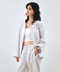 [SET] 컴포트 코튼 스트라이프 긴소매 파자마 화이트 MDPJ005WHITE