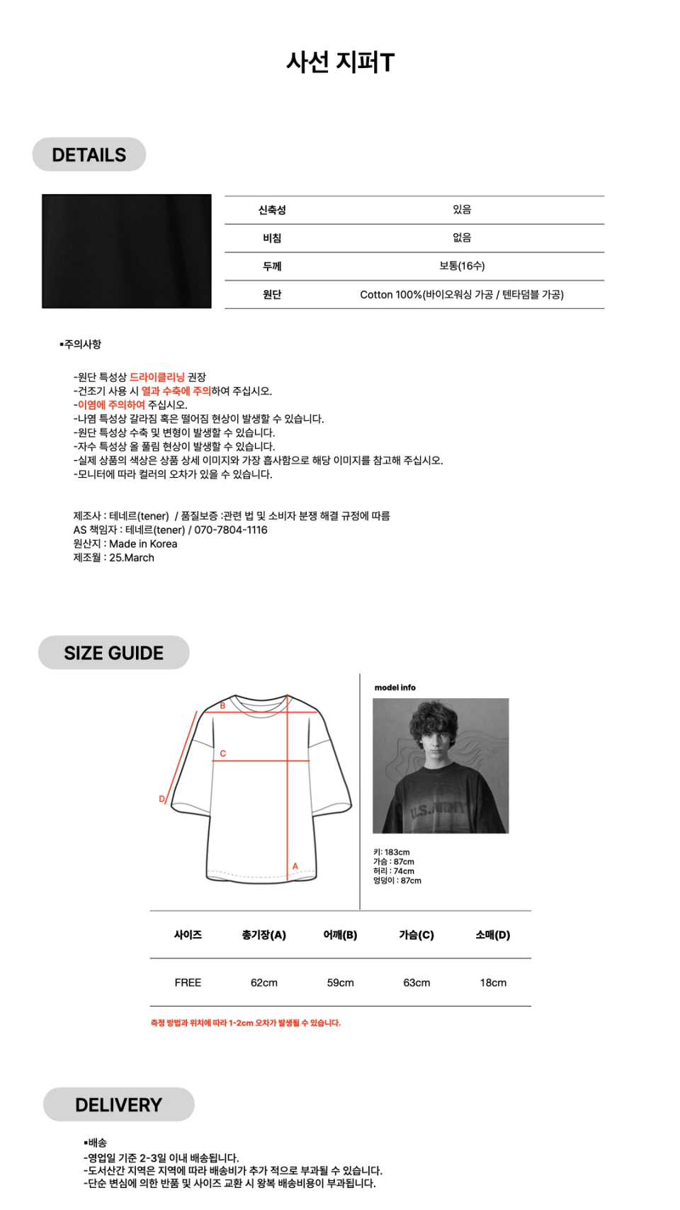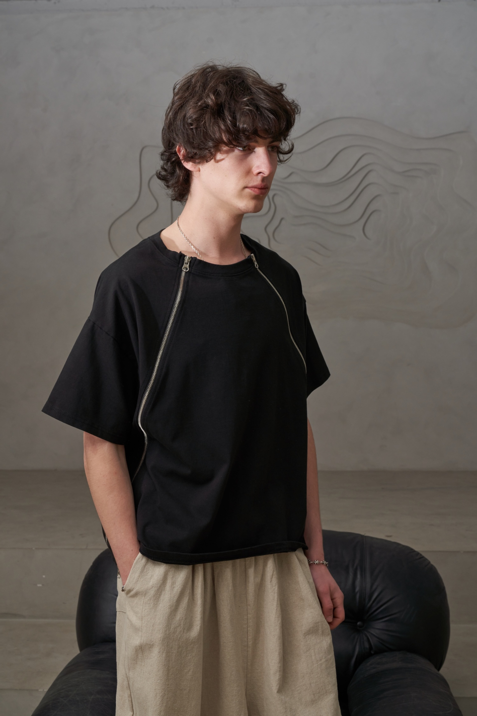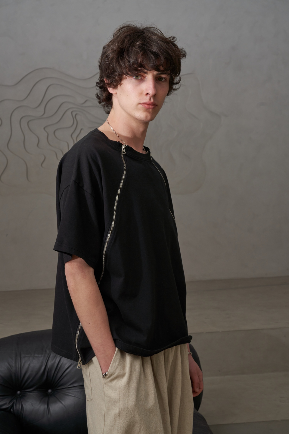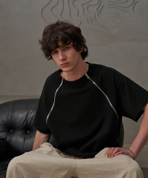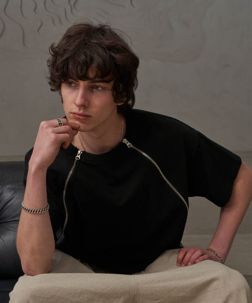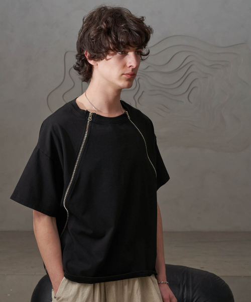 사선 지퍼T(블랙)