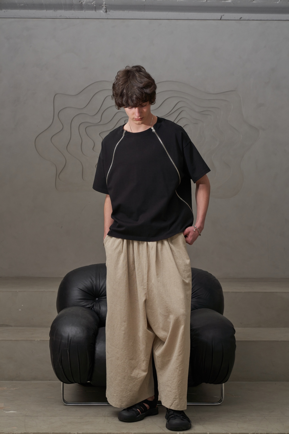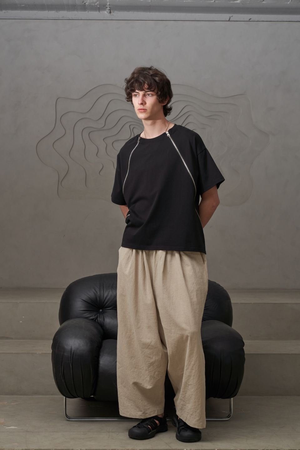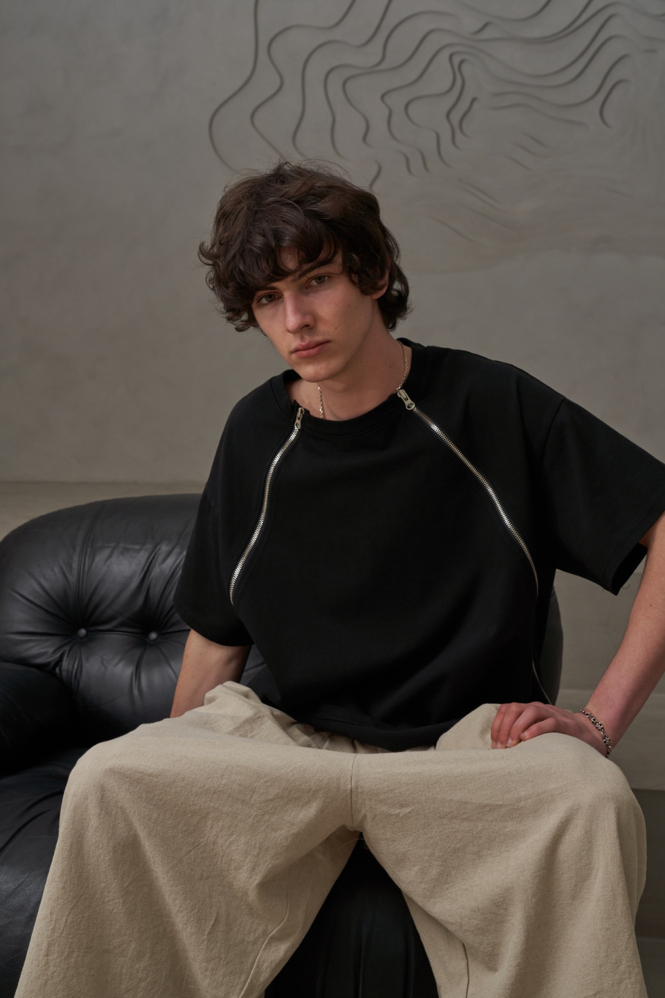 사선 지퍼T(블랙)
