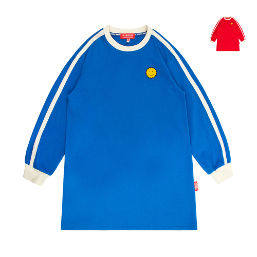 긴팔기장의 컬러 블록이 돋보이는 티 드레스입니다.