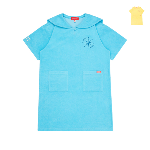 비비드한 색감과 와이드한 세일러 카라가 돋보이는 테리 원피스입니다.