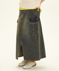 컷팅 카고 롱 데님 스커트 DARK INDIGO (LP3KF696-064)